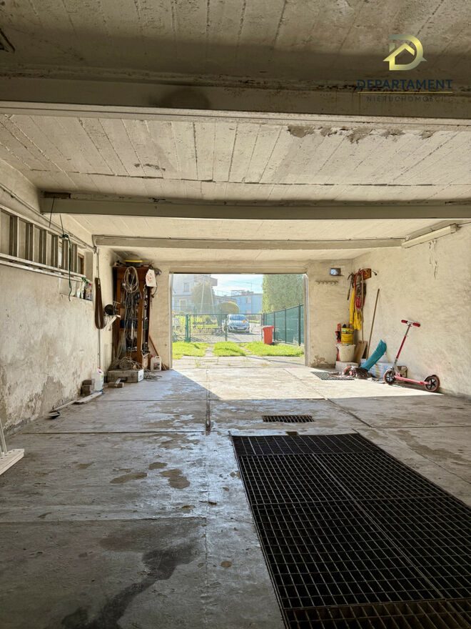 - ogrodzony dom z ogrodem i dużym garażem,