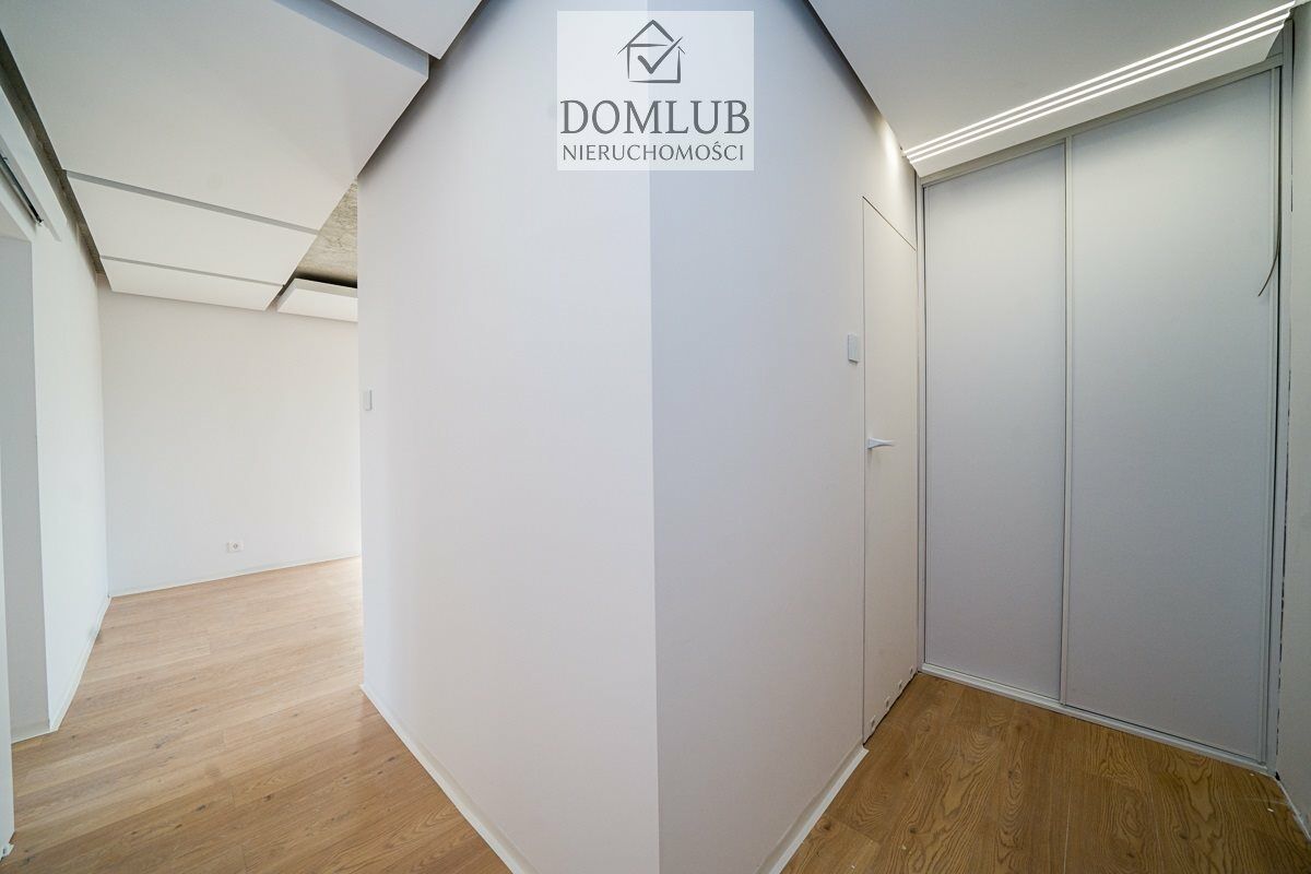 - przedpokój w kształcie litery L z szafą w zabudowie,
