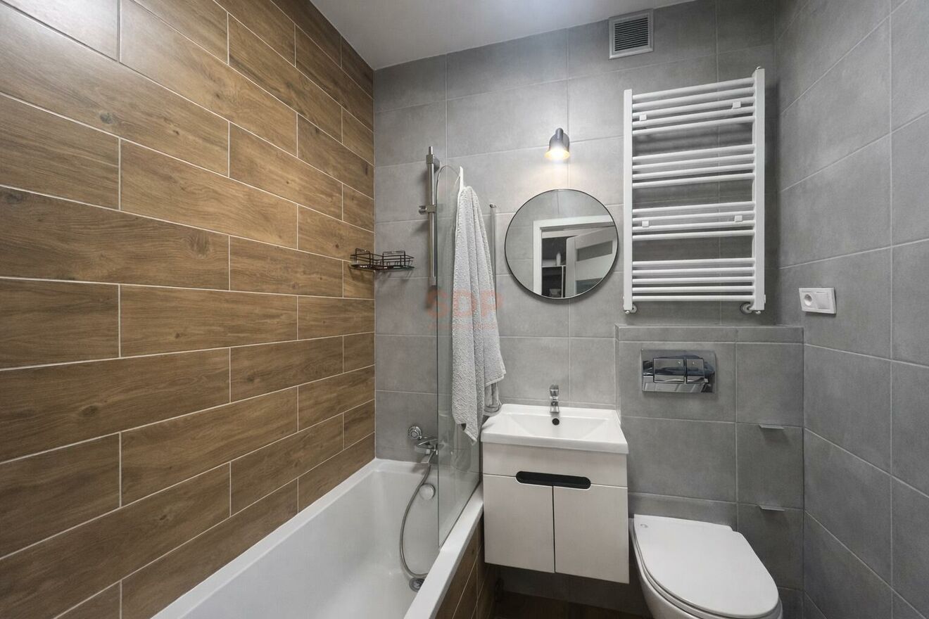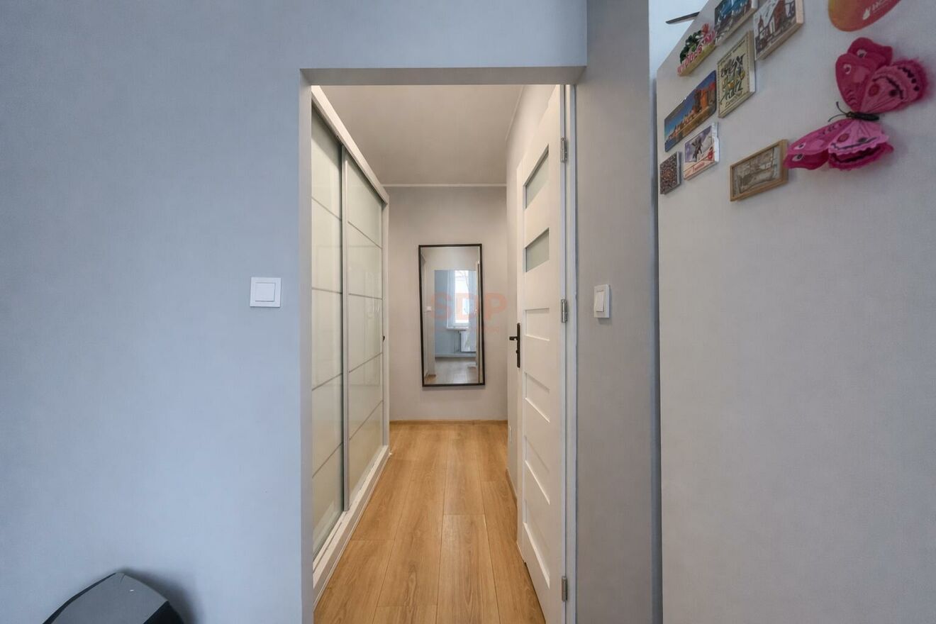 Nieruchomość składa się z jasnego salonu połączonego z otwartą kuchnią, ustawnej sypialni, korytarza z wbudowaną pojemną szafą, oddzielnej garderoby oraz łazienki. Przemyślany układ pomieszczeń sprawia, że przestrzeń jest bardzo funkcjonalna i wygodna w codziennym użytkowaniu.