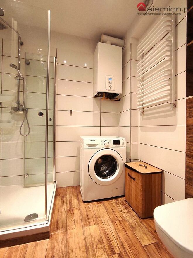 Mieszkanie do wprowadzenia bez ponoszenia nakładów, klimatycznie urządzone i wyposażone (meble kuchenne wraz ze sprzętem AGD - zmywarka, lodówko-zamrażarka, płyta indukcyjna, piekarnik, okap) szafy: zabudowana w przedpokoju oraz narożna w pokoju, w salonie narożnik rozkładany z pojemnikiem na pościel, stół z krzesłami oraz TV wraz ze stolikiem, meble sypialniane oraz meble łazienkowe wraz z pralką. Wszystkie instalacje nowe. Okna plastikowe trzyszybowe skierowane na południe (salon), północ (sypialnia) oraz zachód (pokój). Ogrzewanie (podłogowe) i ciepła woda z dwufunkcyjnego pieca gazowego.