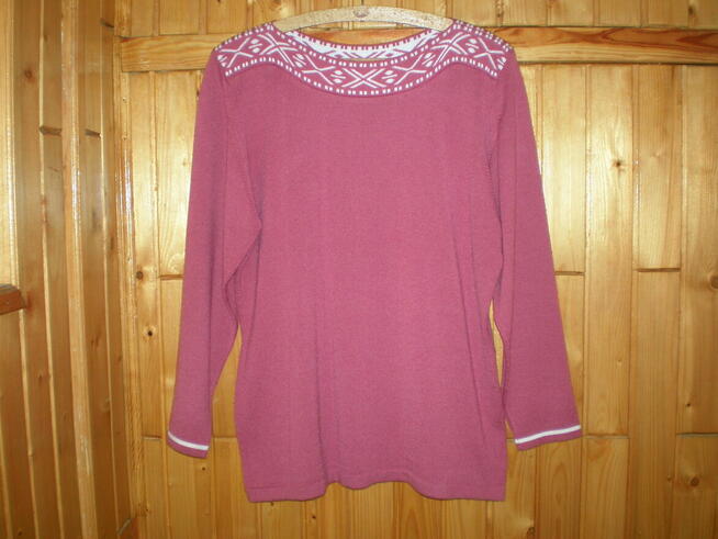 Sweter damski w kolorze czerwonym, rozmiar 44. Używany, w dobrym stanie. Odbiór osobisty, kontakt tel. 664212612.