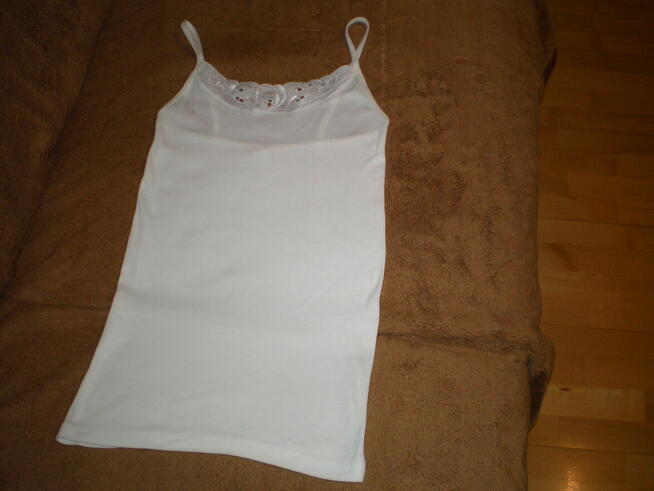 Podkoszulek damska wykonana z bawełny, w kolorze białym, w rozmiarze 38. Używana, w dobrym stanie. Odbiór osobisty, ...