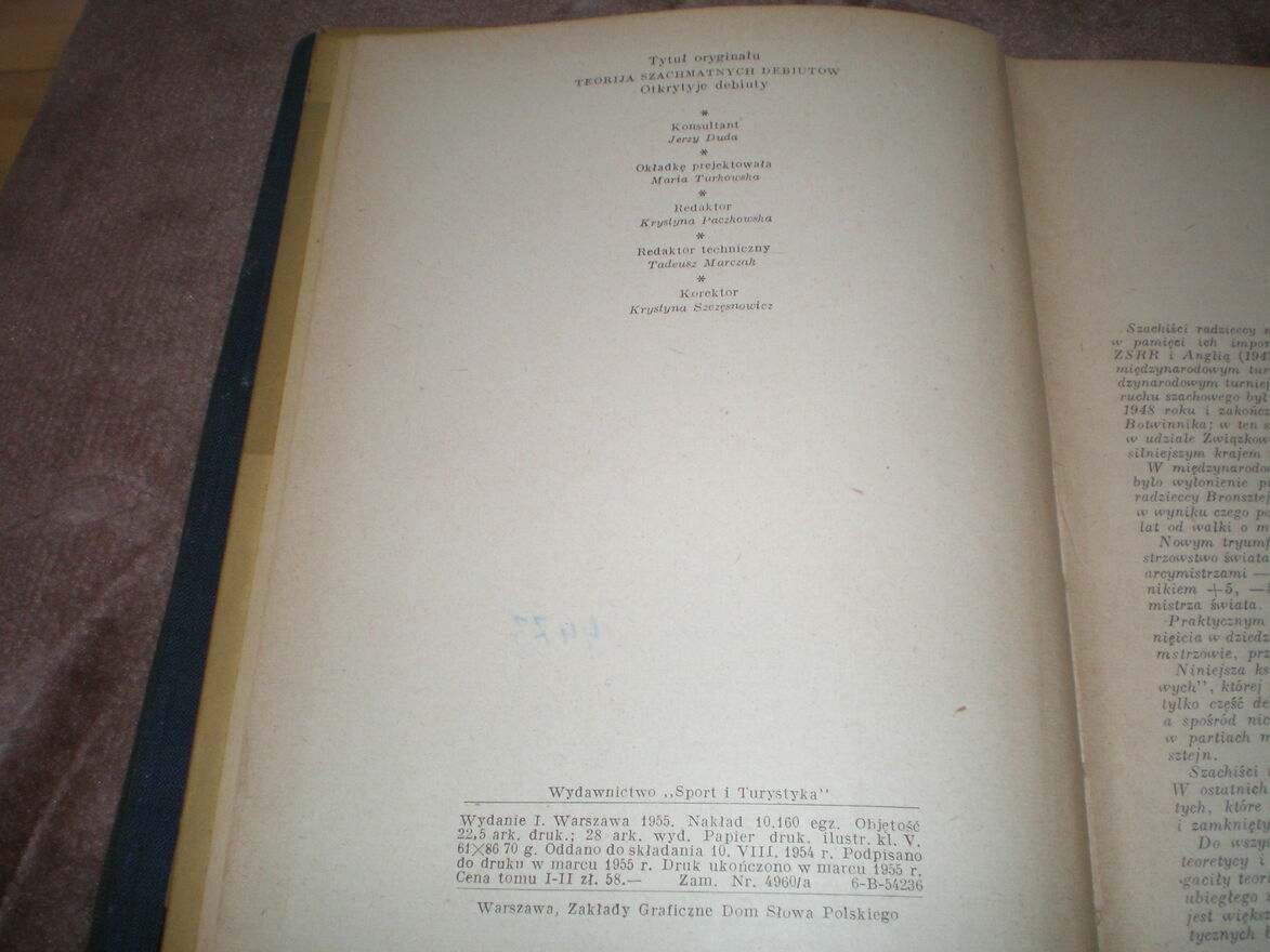 Sprzedam książki Teorie debiutów szachowych część I wydana w 1954r., i część II wydana w 1955r., używane, stan dobry, cena 170 zł., odbiór osobisty, kontakt tel. 664 - pokaż numer telefonu - .Sprawdź zainteresowanie tym ogłoszeniem
