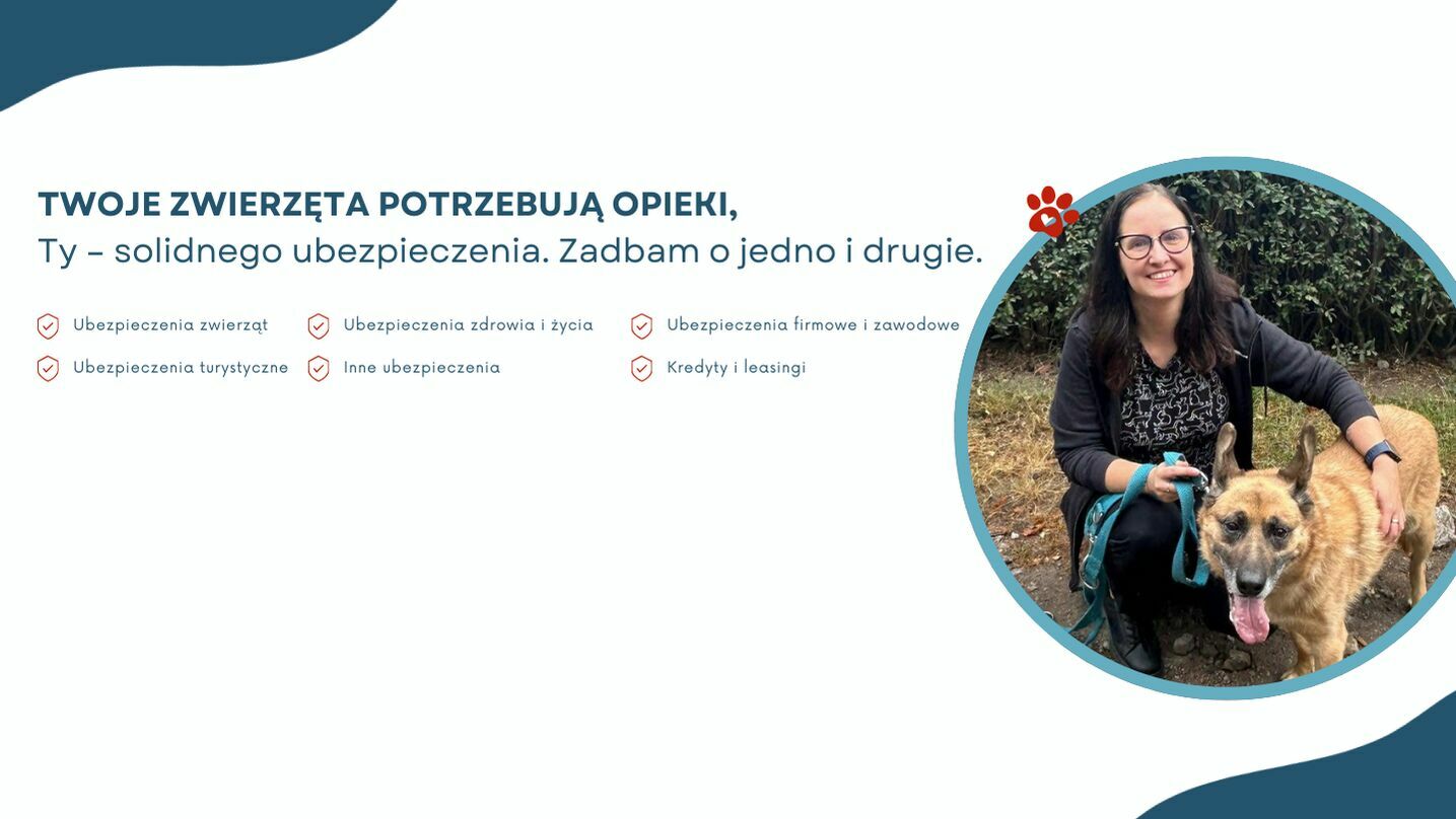 Moją misją jest przede wszystkim zapewnianie spokoju i bezpieczeństwa tym, którzy codziennie troszczą się o zdrowie i życie zwierząt. Dzięki empatii, wiedzy i indywidualnemu podejściu wspieram osoby, które pracują na co dzień z psami oraz kotami, pomagając im chronić to, co kochają najbardziej- ich czworonożnych podopiecznych oraz własną przyszłość zawodową i rodzinną.Doradzam przy wyborze ubezpieczeń, ale nie tylko!