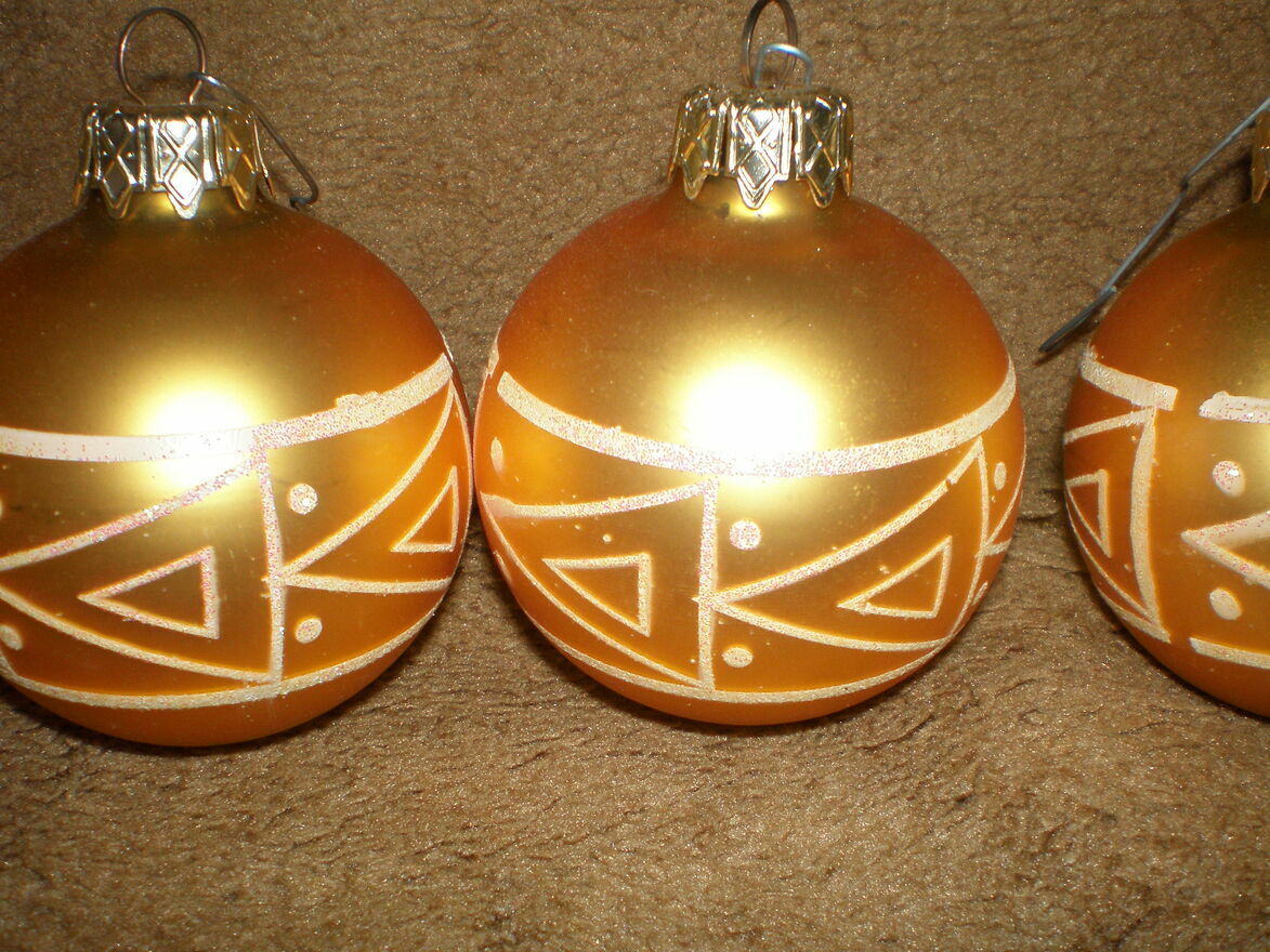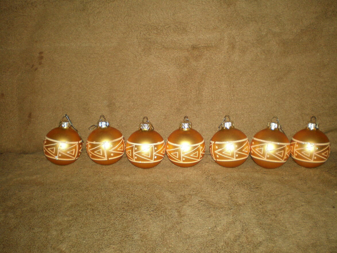 Zestaw 7 używanych, ale w dobrym stanie, złotych bombek choinkowych z geometrycznymi wzorami. Cena wynosi 28 zł. Odbiór osobisty, kontakt tel. 664 - pokaż numer telefonu - .Sprawdź zainteresowanie tym ogłoszeniem